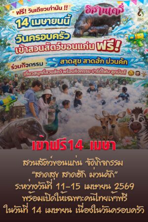Read More(ชมคลิป) สวนสัตว์ขอนแก่น ชวนเที่ยว “สาดสุข สาดฮัก ม่วนคัก” รับสงกรานต์ 2569 พิเศษเฉพาะวันที่ 14 เมษายน 2569 เข้าสวนสัตว์ฟรี