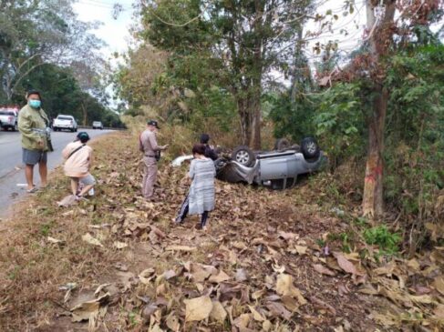 เกิดอุบัติเหตุ 3 รายซ้อน ครูสาวรอดตายปาฏิหาริย์ ฝนตกถนนลื่นรถยนต์เสียหลักพุ่งชนต้นไม้พลิกค่ำสภาพพังยับ ญาติ เชื่อเพราะล็อกเก็ตหลวงปู่เทสก์ เทสก์รังสีและพระร่วงรางปืนช่วยไว้