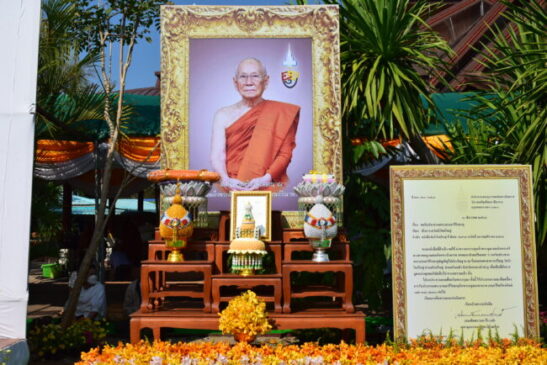 นอกจากนั้นยังมีหลวงปู่คำแปลง ปุณณชิ และ หลวงปู่บุญจันทร์ สีลคุโณ หลวงปู่คลาด ครุธมฺโม หลวงปู่ปฐม ธมฺมธีโร พระวุฒิสารโสภณ เจ้าคณะจังหวัดหนองบัวลำภู(ธ) และ พระเถรานุเถระ พระสังฆาธิการ ร่วม 200 รูปเจริญชัยมงคลคาถา โดยมี นายเวียงชัย แก้วพินิจ รอง ผวจ.หนองบัวลำภู เป็นประธานในการปิดทองและคล้องพวงมาลัยฉัตรทองคำก่อนประกอบพิธียกยอดฉัตรทองคำ ขึ้นสู่ยอดเจดีย์อริยสุภัททานุสรณ์ พร้อมด้วยนางจิราภรณ์ บุญโพธิ์ ผอ.สำนักงานพระพุทธศาสนาจังหวัดหนองบัวลำภู นายสมศักดิ์ แสนอินทร์ นายอำเภอโนนสัง ผู้แทนหัวหน้าส่วนราชการในระดับจังหวัด อำเภอ ผู้บริหารองค์กรปกครองส่วนท้องถิ่น และพุทธศาสนิกชนที่เดินทางมาปฏิบัติธรรมก่อนพิธีการอัญเชิญพระบรมสารีริกธาตุจากต่างจังหวัด