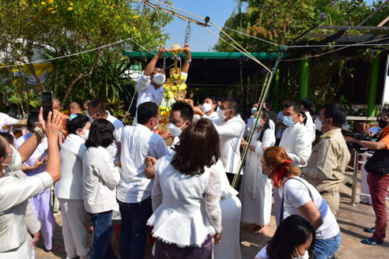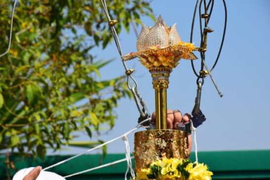 พลังศรัทธาพุทธบริษัท 4 สายหลวงปู่มั่น ภูริทตฺโต ร่วมพิธีอัญเชิญพระบรมสารีริกธาตุบรรจุปลียอดฉัตรทองคำประดิษฐานบนขึ้นสู่ยอดเจดีย์อริยสุภัททาสามัคคีนุสรณ์ วัดป่าโคกใหญ่ ต.โคกใหญ่ อ.โนนสัง จ.หนองบัวลำภู