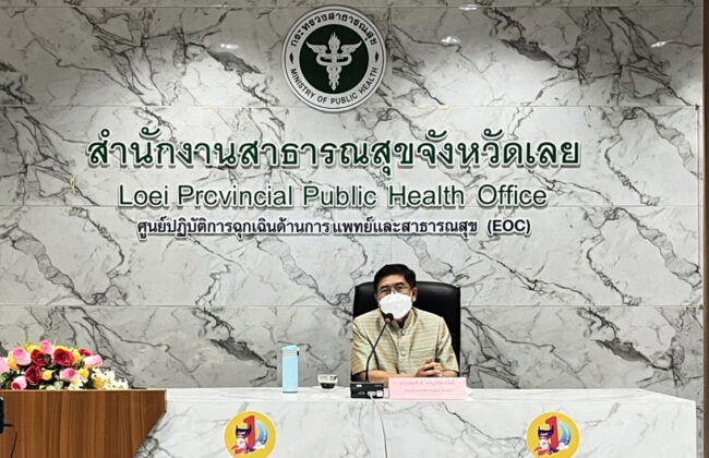 วันที่ 2 ก.พ. 65 เวลา 09.00 น.ที่ห้องประชุม 1 ชั้น 2 สำนักงานสาธารณสุข จังหวัดเลย ศูนย์ปฏิบัติการฉุกเฉินด้านการแพทย์และสาธารณสุข นายผดุงศักดิ์ หาญปรีชาสวัสดิ์ รองผู้ว่าราชการจังหวัดเลย นายแพทย์ยอดลักษณ์ สัยลังกา รองนายแพทย์สาธารณสุขจังหวัดเลย และนายอภิชาต สบู่แก้ว ผู้ช่วยนายแพทย์สาธารณสุขจังหวัดเลย ร่วมกัน แถลงข่าวสถานการณ์โรคไวรัสโควิด-19 ในระบบซูม