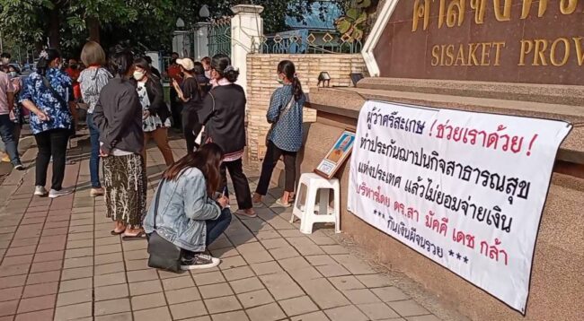 เมื่อวันที่ 3 ก.พ. ที่บริเวณสนามหน้าศาลากลางจังหวัดศรีสะเกษ มีกลุ่มสมาชิกสามาคมฌาปนกิจสงเคราะห์ชมรมสาธารณสุขแห่งประเทศไทย จำนวนกว่า 100 คน รวมตัวกันประท้วงเรียกร้องความเป็นธรรม โดยพากันถือรูปถ่ายของคนที่เสียชีวิตซึ่งเป็นสมาชิกของสมาคมดังกล่าว มาแห่รอบศาลากลางจังหวัดศรีสะเกษ เพื่อเรียกร้องขอความเป็นธรรมกับ นายวัฒนา พุฒิชาติ ผวจ.ศรีสะเกษ เนื่องจากทางสมาคมดังกล่าวมีการเรียกเก็บเบี้ยประกันแต่ไม่ยอมจ่ายเงินค่าประกันชีวิตให้กับครอบครัวของสมาชิกที่เสียชีวิต ซึ่งมียอดค้างจ่ายรวม 175,879,351 บาท จากสมาชิก 830 ราย ส่งผลทำให้ชาวบ้านซึ่งเป็นสมาชิกของสมาคมได้รับผลกระทบเดือดร้อนอย่างหนัก