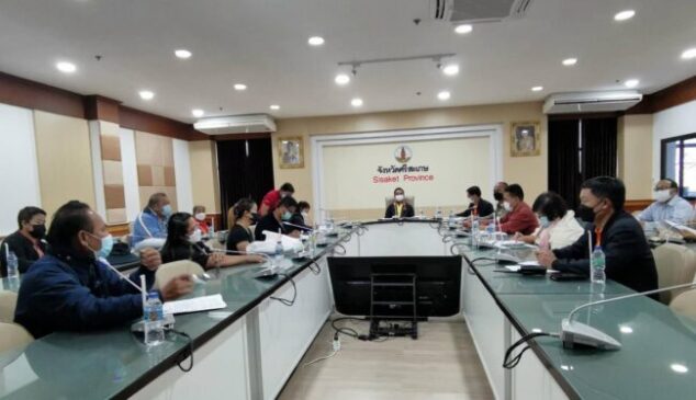 ต่อมาที่ห้องประชุมสระกำแพงใหญ่ ชั้น 4 ศาลากลางจังหวัดศรีสะเกษ นายวัฒนา พุฒิชาติ ผวจ.ศรีสะเกษ พร้อมด้วย นายสำรวย เกษกุล รอง ผวจ. พ.ต.อ.เทพพิทักษ์ แสงกล้า รอง ผบก.ภ.จว.ศรีสะเกษ เรียกประชุมด่วนเจ้าหน้าที่ที่เกี่ยวข้อง ร่วมกับตัวแทนสมาชิก สชสท. หลังจากที่กลุ่มชาวบ้านได้ชุมนุมอยู่หน้าศาลากลางเพื่อเรียกร้องให้ผู้ว่าราชการจังหวัดช่วยเหลือแก้ไขปัญหาความเดือดร้อนในเรื่องที่สมาคมฌาปนกิจสงเคราะห์จ่ายเงินสงเคราะห์ครอบครัวของสมาชิกที่เสียชีวิตล่าช้า ซึ่งการประชุมใช้เวลาประมาณ 1 ชม.ครึ่ง จึงเลิกประชุม