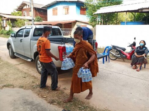 อสม.น้ำตาซึม ถูกสั่งปิดเข้าออก 2 หมู่บ้าน 500 หลังคาเรือน ปลื้มปริ่ม พระสงฆ์ไม่ทิ้งชาวบ้าน นำข้าวสารอาหารแห้งส่งช่วยเหลือบรรเทาทุกข์