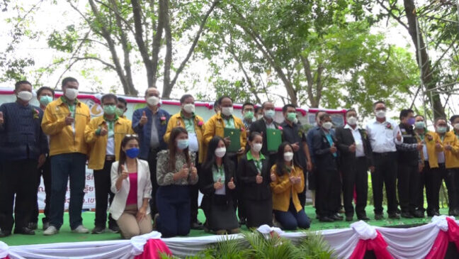 ทางด้านนายสุขทัศน์ ต่างวิริยกุล รองผู้ว่าการด้านปฏิบัติการ กล่าวเพิ่มเติมว่า ต้องขอบคุณนายประพัฒน์ ปัญญาชาติรักษ์ ประธานกรรมการสภาเกษตรกรแห่งชาติ ได้มีการกำหนดนโยบายชัดเจนในการที่จะดูแลพี่น้องเกษตรกร รวมถึงเกษตรกรชาวสวนยาง โดยในครั้งนี้การที่การยางได้ทำงานร่วมกับสภาเกษตรกรแห่งชาติ ท่านได้มีส่วนในการขับเคลื่อนในเชิงนโยบาย โดยมีทีมผู้บริหารการยาง กยท. เขตภาคอีสานตอนบนซึ่งได้ทำโมเดลความร่วมมือ 2 หน่วยงานนี้ ซึ่งในความชัดเจนเกษตรกรชาวสวนยางมีพื้นที่ไม่มาก โดยเฉลี่ยต่อคนประมาณ 10 ไร่ การสร้างโมเดลที่ว่า การที่เอาน้ำเข้าไปในสวนยาง ส่งเสริมการใช้ยางในประเทศ จะทำให้ราคายางมีเสถียรภาพ