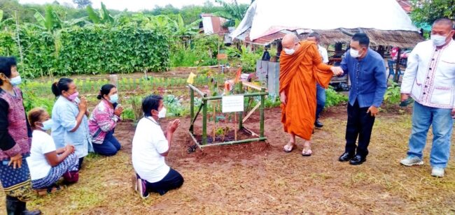 โดยหลวงพ่ออินทร์ถวายฯ ได้ปลูกไม้ผลเพื่อให้ชุมชนนำไปขยายผลต่อซึ่งชุมชนได้ขยายผลโครงการบ้านนี้มีรักปลูกผักกินเอง และทางนี้มีผลผู้คนรักกัน ทุกครัวเรือน เพื่อสร้างความมั่นคงด้านอาหาร จากนั้นร่วมกันทำบุญตักบาตร ถวายภัตตาหารเช้าแด่พระสงฆ์รับฟังปาฐกถาธรรมจากพระราชภาวนาวชิรากร(หลวงพ่ออินทร์ถวาย สันตุสสโก) ในเรื่องการปฎิบัติตามหลักของพุทธศาสนา คือ ทาน ศีล ภาวนา การรักกายใจ โดยเฉพาะการแบ่งปันโดยการให้ทาน การรักษาและปฎิบัติตามหลักศีลห้า