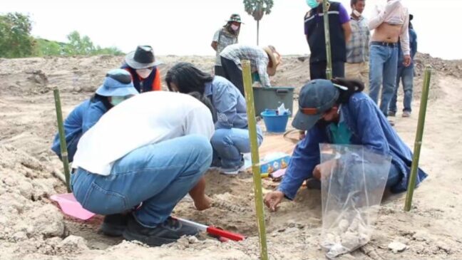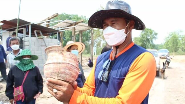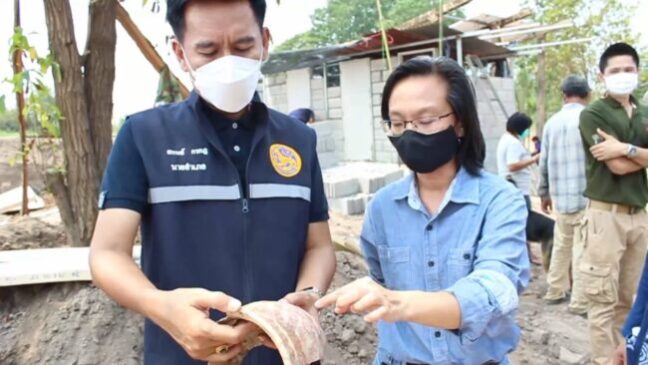นางสาวกนกวลี สุริยะธรรม ผอ.พิพิธภัณฑ์สถานแห่งชาติบ้านเชียง เปิดเผยว่า หลังจากเจ้าของพื้นที่ได้พบวัตถุโบราณในที่ดินของตนเอง ได้ประสานไปยังสำนักศิลปากรที่ 8 ขอนแก่น ให้เข้ามาตรวจสอบ สัปดาห์ที่แล้ว นักโบราณคดีได้ลงมาตรวจสอบแล้ว 1 ครั้ง โบราณวัตถุที่พบเป็นเศษกระดูกมนุษย์ กระดูกสัตว์ เครื่องมือหิน เครื่องประดับหิน เบื้องต้นประสานเจ้าของที่ดิน ระงับเรื่องการขุดดินในพื้นที่เพิ่มเติม หากจะใช้ประโยชน์พื้นที่ต้องกลบทั้งหมด และต้องไม่ขุดลงไปเพิ่มเติมอีก