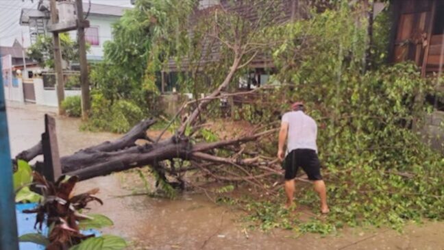 28 เม.ย. 2565 นี่เป็นคลิปจากกล้องวงจรปิดของบ้านหลังหนึ่ง ในพื้นที่อ.บ้านไผ่ จ.ขอนแก่น บันทึกวินาทีแรงลมพัดต้นไม้ขนาดใหญ่ที่อยู่ข้างบ้าน จนโค่นล้มทั้งต้นขวางถนนในหมู่บ้าน เคราะห์ดีที่ไม่มีคนอยู่ใกล้ และไม่ล้มทับบ้านเรือนที่อยู่ใกล้ โดยเหตุการณ์เกิดขึ้นเมื่อช่วงเย็นที่ผ่านมา และภายหลังจากลมพายุกระโชกแรงลดลง ก็ตามมาด้วยทั้งลูกเห็บและฝนตกอย่างหนัก แรงลมพัดหลังคาบ้านเรือนประชาชนปลิวหลายหลัง เจ้าหน้าที่ที่เกี่ยวข้องเร่งสำรวจความเสียหายให้การช่วยเหลือแล้ว