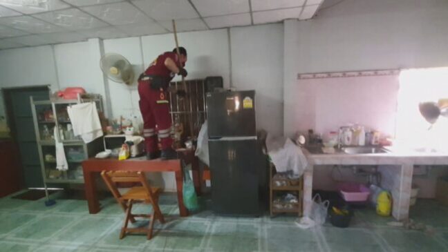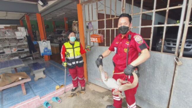 วันที่14 พฤษภาคม 2565 เวลา13.30 น. มูลนิธิอุดรส่งเสริมธรรม ได้รับแจ้งจากเจ้าของร้านขายเครื่องสังฆภัณฑ์ เลขที่138/1 บ้านหนองสวรรค์ หมู่5 ตำบลเชียงพิณ อ.เมืองอุดรธานี ได้มีตัวแลน (ตะกวด) ขนาดใหญ่วิ่งเข้ามาในร้าน กลัวว่าสัตว์เลี้ยงและคนบ้านจะได้อันตราย หลังจากนั้นอาสากู้ภัย จึงรุดไปตรวจสอบ ในที่เกิดเหตุเป็นร้านปูนสองชั้นเจ้าของบ้านพาอาสากู้ภัยไปที่หลังร้านซึ่งเป็นห้องครัว พบตัวแลนขนาดใหญ่หลบอยู่หลังตู้เย็น โดยมีเพียงอุปกรณ์ที่นำมาเป็นเหล็กคีบไม่สามารถจับตัวแลนได้เพราะมันมีขนาดใหญ่ จึงให้เจ้าของหาท่อนไม้และเชือกไนล่อนมาให้ เพื่อทำบ่วงเชือกคล้องจับตัวแลน โดยอาสากู้ภัย 2 คนที่อยู่ด้านล่าง ได้เอาจอบไปทำการดันตัวแลนเข้าติดกับฝาผนังเอาไว้ไม่ให้มันวิ่งหลบหนีไปไหนได้ ส่วนอาสากู้ภัยอีกคน ได้ปีนขึ้นไปบนโต๊ะ แล้วเอาบ่วงเชือกที่นำมาทำการคล้องคอตัวแลนเอาไว้