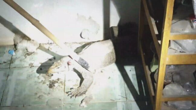 หลังจากนั้นเจ้าตัวแลนมันก็ยังไม่สิ้นฤทธิ์หันมาจะกัดและใช้กรงเล็บเท้าจะข่วนอาสากู้ภัย แต่ไม่มีใครเป็นอะไร เพราะมีความชำนาญในการจับ จึงได้เอากระสอบป่านมาคลุมตัวแลนเอาไว้ แล้วใช้ผ้าเทปพันสีดำทำการพันรอบปากมันเอาไว้ ก่อนที่จะใช้เชือกไนล่อนทำการมัดขาหน้าและขาหลังทั้ง4ขาเข้ากับหางของมันเอาไว้เพื่อไม่ดิ้นสู้ได้จนมันสิ้นฤทธิ์ แล้วนำมาหน้าบ้าน ซึ่งเจ้าของบ้านได้ถ่ายรูปตัวแลนกับเลขที่ร้านเอาไว้ เพื่อจะส่งไปให้ เพื่อนที่รู้จักเพราะหลายคน ได้โทรศัพท์มาสอบถามเจ้าร้านเลขที่ร้านอะไรเนื่องจากนำไปเสี่ยงโชค แล้วนำตัวแลนใส่กระสอบป่านเอาไปปล่อยสู่ธรรมชาติต่อไป