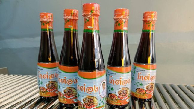 จึงได้ร่วมกับโรงงานซึ่งตั้งอยู่เขตอำเภอธวัชบุรี จังหวัดร้อยเอ็ด ซึ่งโรงงานดังกล่าวเขาทำหน้าที่ผลิตน้ำปลาร้า แต่ไม่ได้ทำแบรนด์อะไรเลย เขามีความรู้ในเรื่องการจัดการปลาร้าซึ่งโรงงานมีปลาร้าให้เลือกอยู่ประมาณ 4-5 อย่าง รสชาติแต่ละอย่างก็จะแตกต่างกันไปเช่นโหน่งมาก โหน่งน้อย ที่คนกินปลาร้าพูดกัน เราก็เอามาปรุงแต่งทดลองหลายต่อหลายครั้งแล้วผสมน้ำจากใบกัญชา ในอัตราส่วนไม่เกิน 0.2 เปอร์เซ็นต์ ตามที่ อย.กำหนด จนกระทั่งได้รสชาติน้ำปลาร้าที่เราต้องการ เราก็ได้คุยกับโรงงานในการเอาสูตรดังกล่าวให้โรงงานทำเรื่องขออนุญาตทำการผลิตและจำหน่าย ผ่าน อย.