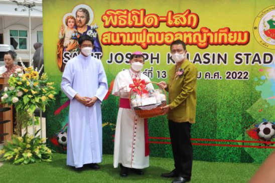 ด้านพระอัครสังฆราชอันตน วีระเดช ใจเสรี ประมุขอัครสังฆมณฑลท่าแร่-หนองแสง ผู้รับใบอนุญาตโรงเรียนเซนต์ยอแซฟกาฬสินธุ์ กล่าวว่า ขอชื่นชมและแสดงความยินดีกับโรงเรียนที่มีสนามฟุตบอลหญ้าเทียม เพื่อใช้ในการจัดการเรียนการสอน เสริมสร้างความสามารถด้านกีฬาฟุตบอลให้กับนักเรียน และขอให้ในสนามแห่งนี้เกิดประโยชน์สูงสุดตามวัตถุประสงค์ที่สร้างข้อต่อไป