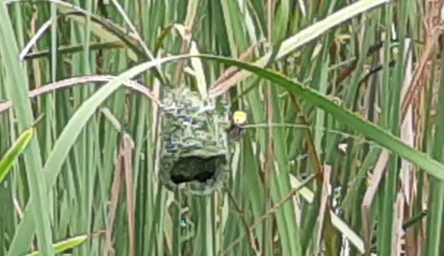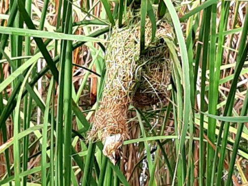วันที่ 16 ส.ค.2565 ผู้สื่อข่าวได้ลงพื้นที่ตรวจสอบ สถานที่บ้านทุ่งศิลป์ครูแดง ต.น้ำโมง อ.ท่าบ่อ จ.หนองคาย หลังจากได้รับประสานจาก นายเฉลิมศักดิ์ ธรรมเรืองฤทธิ์ หรือครูแดงบ้านศิลป์ไทย ซึ่งเป็นเจ้าของ ว่า พบมีฝูงนกกระจาบจำนวนมากเข้าไปอาศัยทำรังอยู่ที่ต้นธูปฤาษีกลางสระน้ำและบริเวณต้นไม้ริมสระน้ำ ไปถึงต้องตื่นตาเมื่อ พบครูแดงบ้านศิลป์ไทย และเด็กนักเรียนพร้อมผู้ปกครองกำลังถ่ายภาพนกกระจาบที่ทำรังอยู่บนยอดต้นธูปฤาษีกลางสระน้ำดังกล่าว และยังพบบางรังมีลูกน้อยแล้ว บางรังตัวผู้กำลังสร้างรังด้วยการโน้มต้นธูปฤาษี แล้วนำใบหญ้า ใบข้าวในท้องนาที่นกกระจาบลงจิก รีดเป็นเส้นมาสานถักทอเป็นรัง พร้อมกับการเกี้ยวพาราสีตัวเมียให้มาอาศัยอยู่ด้วย เพื่อให้เกิดเป็นครอบครัว ซึ่งพบว่าต้นธูปฤาษี ถูกฝูงนกกระจาบจับจองทำรัง คล้ายกับเป็นหมู่บ้านจัดสรร รังใครรังมัน คู่ใครคู่มันกว่า 100 รัง และส่งเสียงร้องเจี๊ยวจ๊าวดังระงมไปทั่วบริเวณ เป็นสีสันบรรยากาศให้แก่เด็กและผู้ปกครองที่มาดูด้วยความสนใจอย่างคึกคัก และที่น่าสังเกตุอีกอย่างคือ นกกระจาบสามารถที่จะรู้ทิศทางของฝน ว่าฝนจะมาจากทิศไหนก็จะทำรังหันปากช่องทางเข้ารังหลบไปอีกด้าน เพื่อป้องกันภายในรังไม่ให้โดนน้ำฝนนั่นเอง