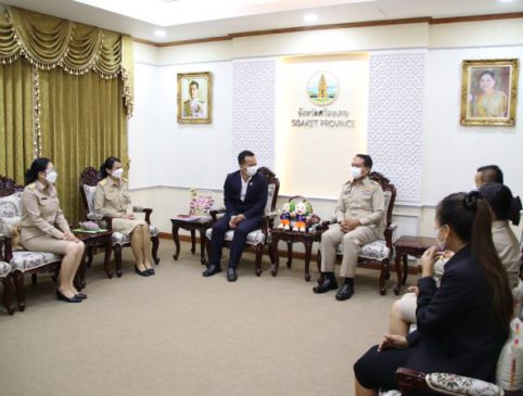 เมื่อเร็วๆนี้ ที่ชั้น 5 ศาลากลางจังหวัดศรีสะเกษ อ.เมือง จ.ศรีสะเกษ นายพงษ์ศักดิ์ อริยะสุนทรกุล ที่ปรึกษา รมว.แรงงาน พร้อมด้วย นายวิชัย เลิศภัทรนันท์ แรงงานจังหวัดศรีสะเกษ นางนวพร นารถบุญ ประกันสังคมจังหวัดศรีสะเกษ น.ส.สุภาวดี ส่องเมืองสุข สวัสดิการและคุ้มครองแรงงานจังหวัดศรีสะเกษ รวมทั้งผู้แทน ผอ.สำนักงานพัฒนาฝีมือแรงงาน และผู้แทน ผอ.สำนักงานจัดหางานจังหวัดศรีสะเกษ เดินทางเข้าพบ นายวัฒนา พุฒิชาติ ผวจ.ศรีสะเกษ เพื่อหารือข้อราชการในการขับเคลื่อนงานตามนโยบายต่างๆของทางกระทรวงแรงงาน นำโดย นายสุชาติ ชมกลิ่น รมว.แรงงาน ในการที่จะร่วมกันบูรณาการให้เกิดผลสัมฤทธิ์เพื่อประโยชน์แก่พี่น้องประชาชนและทางราชการมากที่สุด
