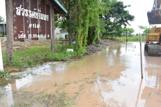 อันเนื่องมาจากฝั่งตรงข้ามซึ่งเป็นทีดินของเอกชนมีถมดินปิดทางระบายน้ำถึง นอกจากนั้นยังมีท่อประปาขนาดใหญ่มากีดขวางทางน้ำไหล ซึ่งเดิมทีน้ำที่เคยระบายสะดวก มาวันนี้น้ำไหลไม่สะดวกเลยทำให้เกิดน้ำท่วมขังและการทำถนน 4เลนไม่วางท่อระบายน้ำ 2 ข้างทาง จึงทำให้น้ำจากถนน ใหญ่กับน้ำจากห้วยขมิ้นบริเวณเหนือหมู่บ้านไหลลงมา บรรจบกันที่ร้านอาหารสวรรค์บ้านนาทุกปีและเกิดปัญหามากกว่าทุกปี จึงขอความอนุเคราะห์หน่วยงานที่เกี่ยวข้องได้ให้ความช่วยเหลือโดยการระบายน้ำท่วมขังให้ลดลงโดยเร็วเพื่อที่จะได้ประกอบอาชีพและทำมาหากินต่อไป