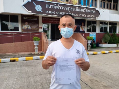เมื่อวันที่ 6 ก.ย. ด.ต.ณรงค์กร สุหร่าย ผบ.หมู่ งานป้องกันและปราบปราม สภ.โพนเขวา อ.เมือง จ.ศรีสะเกษ เปิดเผยกับผู้สื่อข่าวว่า เมื่อช่วงบ่ายวานนี้ (5 ก.ย.) ได้นำหลักฐานคลิปเสียงเดินทางเข้าแจ้งความร้องทุกข์กับ ร.ต.อ.เจมรัก โสสอน พงส.สภ.เมืองศรีสะเกษ ว่าถูกคนร้ายที่ใช้โทรศัพท์หมายเลข 09-5387-1846 โทรเข้ามาที่มือถือส่วนตัวของตน ขณะที่ตนอยู่บ้านพักส่วนตัวในเขตเทศบาลเมืองศรีสะเกษ พื้นที่รับผิดชอบของ สภ.เมืองศรีสะเกษ