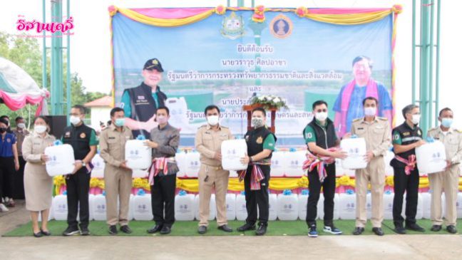 เมื่อเวลา 09.30 น. วันที่ 10 กันยายน 2565 นายวราวุธ ศิลปอาชา รัฐมนตรีว่าการกระทรวงทรัพยากรธรรมชาติและสิ่งแวดล้อม พร้อมด้วยนายประภัตร โพธสุทน รัฐมนตรีช่วยว่าการกระทรวงเกษตรและสหกรณ์ และคณะ ลงพื้นที่มาตรวจติดตามปัญหาการขาดแคลนน้ำอุปโภค บริโภค ในพื้นที่ ต.บ้านโนน อ.ซำสูง จ.ขอนแก่น หลังประสบปัญหาการขาดแคลนน้ำมานาน ไม่มีแม่น้ำสายหลักไหลผ่าน ฤดูแล้ง แหล่งน้ำผิวกินแห้งขอดและมีความขุ่น คุณภาพน้ำผิวดินกร่อยเค็ม ส่งผลให้ประชาชนในพื้นที่ได้รับความเดือดร้อน 2,330 ครัวเรือน พร้อมทั้งมอบน้ำดื่มบรรจุแกนลอน 20 ลิตร ให้กับกำนัน ผู้ใหญ่บ้าน และชาวบ้าน จำนวน 13 หมู่บ้าน โดยมีนายพันเทพ เสาโกศล รองผู้ว่าราชการจังหวัดขอนแก่น กำนัน ผู้ใหญ่บ้าน และ ชาว อ.ซำสูง ให้การต้อนรับ
