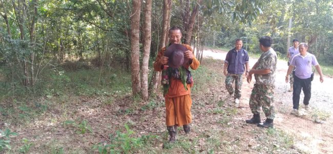 เมื่อเวลา 07.30 น. วันที่ 13 ก.ย.65 นายวิษณุ กุมภาว์ หัวหน้าเขตรักษาพันธุ์สัตว์ป่าภูวัว ได้รับแจ้งว่ามีการลักลอบตัดไม้ในพื้นที่รักษาพันธุ์สัตว์ป่าภูวัว บริเวณเขตป่าแสนช้างไล่ บ้านทุ่งทรายจก หมู่ 4 ต.บ้านต้อง อ.เซกา จ.บึงกาฬ,จึงสั่งการให้ นายปรีชา กงอัมพร และเจ้าหน้าที่เขตพันธุ์สัตว์ป่าภูวัวออกตรวจลาดตระเวร ระหว่างลาดตระเวรอยู่นั้น พบชายบุคลิกแต่งตัวคล้ายพระสงฆ์ ทราบชื่อภายหลังชื่อพระวีทัศทะนาม อินทมุข เดินลัดเลาะมาทางแนวชายป่าและมีพิรุธน่าสงสัย จากนั้นเจ้าหน้าที่เขตพันธุ์สัตว์ป่าภูวัวจึงเรียกให้หยุด และได้ประสานเจ้าหน้าที่ตำรวจ สภ.โสกก่าม นำโดย ร.ต.อ.ณัฐดน สุวรรณโค