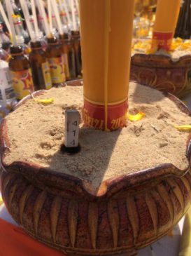 อย่างไรก็ตามสำหรับการประกอบพิธีบวงสรวงและพุทธาภิเษกวันนี้ บรรยากาศการทำบุญเป็นไปอย่างเรียบง่าย แต่มีความคึกคักคัก เป็นอย่างมาก โดยผู้ที่มีความชื่นชอบเลขเด็ด โชคลาภ ซึ่งตามที่สังเกตจากอ่างน้ำมนต์ โดยหยดเทียนหรือน้ำตาเทียนที่หยดลงผิวน้ำ มีลักษณะคล้ายพระสิวลีและท้าวเวสสุวรรณเป็นอย่างมาก ขณะที่ธูปนำโชคนั้น ระบุตัวเลข 414 ชัดเจน สอดคล้องกับวันจัดงานวันแรกคือวันที่ 14 ม.ค.66 ที่ผ่านมา ทุกคนที่ได้เห็นต่างฮือฮา พร้อมล้อมวงมุงดู บางคนใช้กล้องโทรศัพท์บันทึกภาพ ก่อนแชร์ให้ญาติพี่น้องต่างจังหวัดและไม่ได้มาร่วมงานดู เพื่อที่จะนำไปเสี่ยงโชคในงวดที่จะถึงนี้ ทั้งนี้ เป็นความเชื่อส่วนบุคคล