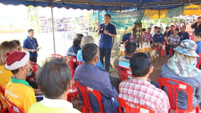 วันที่ 10 พฤษภาคม 2566 ที่แปลงปลูกข้าวโพดเลี้ยงสัตว์ของนางสุมาลี ไชยเดช บ้านหนองบัวคำมูล ต.คูคำ อ.ซำสูง จ.ขอนแก่น นายณัฐพงศ์ ศิริชนะ เลขาธิการมูลนิธิปิดทองหลังพระ สืบสานแนวพระราชดำริ พร้อมคณะ เดินทางลงพื้นที่ติดตามและให้กำลังเกษตรกรที่เข้าร่วมโครงการต้นแบบปลูกข้าวโพดเลี้ยงสัตว์ จังหวัดขอนแก่น ปี 2565/2566 ในการเก็บเกี่ยวผลผลิตข้าวโพดเลี้ยงสัตว์ โดยมีนายไกรสร กองฉลาด ผู้ว่าราชการจังหวัดขอนแก่น นายธงชัย มูลคำศรี เกษตรจังหวัดขอนแก่น ผู้แทนจากบริษัท เจริญโภคภัณฑ์โปรดิ๊วส จำกัด หรือ ซีพีพี พร้อมด้วย ส่วนราชการในสังกัดกระทรวงเกษตรและสหกรณ์ ผู้บริหารองค์กรปกครองส่วนท้องถิ่น เจ้าหน้าที่ และเกษตรกรในพื้นที่ให้ความสนใจเข้าร่วมติดตามและแลกเปลี่ยนความคิดเห็นจำนวนมาก โดยหลังจากการพบปะและแลกเปลี่ยนความรู้ ปัญหา และอุปสรรคต่างๆ เลขาธิการมูลนิธิปิดทองหลังพระ สืบสานแนวพระราชดำริ พร้อมคณะ และเกษตรกร ได้ร่วมกันติดตามการการเก็บเกี่ยวผลผลิตโดยรถเกี่ยวข้าวโพด การไถกลบตอซังข้าวแทนการเผา รวมทั้งการอัดก้อนใบข้าวโพด เพื่อลดปัญหาการเผาที่สร้างมลภาวะทางอากาศและสิ่งแวดล้อม