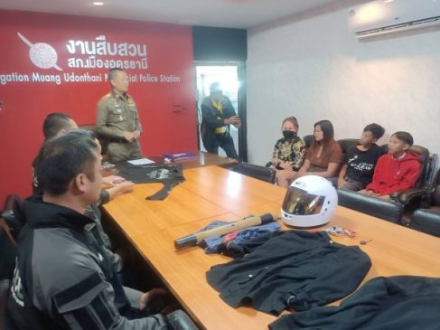 พ.ต.อ.พัฒนวงศ์ กล่าวว่า จากกรณีที่เมื่อเวลา 19.48 น.วันที่ 12 ม.ค.พ.ต.ต.ธีรภาพ ภูขันซ้าย สว.(สอบสวน) สภ.เมืองอุดรธานี ได้รับแจ้งจาก นายสัญญา พระคำเจริญ อายุ 45 ปี อยู่บ้านเลขที่ 22/1 ม.2 ซ.บ้านม่วง ต.หมากแข้ง อ.เมืองอุดรธานี ว่า ขณะที่ ด.ช. อชิตพล พระคำเจริญ หรืออาชิ อายุ 13 ปี บุตรชาย กำลังขับขี่รถ จยย.ยี่ห้อ ยามาฮ่าฟีโน่ สีดำ-ทอง ทะเบียน คธย 969 อุดรธานี โดยมี ด.ช.พัสกร ทะตะสิงห์ หรือพัตเตอร์ อายุ 13 ปี นั่งซ้อนท้าย พากันไปเอากางเกงกับรุ่นพี่ที่หอพักบริเวณชุมชนเก่าจาน ขณะขับขี่รถอยู่หลังตลาดหนองบัว ซุมชนเก่าจาน ก็ได้มีวัยรุ่น 2 คน อายุประมาณ 15-16ปี ขี่รถ จยย.ยี่ห้อฮอนด้า เวฟ 110 I สีน้ำเงินขาว ไม่ติดแผ่นป้ายทะเบียน ขับรถสวนทางมา คนขับสวมเสื้อคลุมมีฮู๊ด คลุมศีรษะคนซ้อนท้ายใส่หมวกกันน๊อคสีขาว แล้วจากนั้นคนร้ายได้ขับรถปาดหน้ารถของลูกชายตน คนซ้อนท้ายชักสิ่งของคล้ายอาวุธปืน ออกมาแล้วถามตนว่า “ใส่เสื้อดอนเหรอ มึงจอดดิ” ด.ช.อชิตพลฯ จึงจอดรถถูกขู่บังคับให้ถอดเสื้อให้ และ ด.ช.อชิตพลฯ จึงถอดให้ไป แล้วคนร้ายก็ขับขี่รถหลบหนีมุ่งหน้าไปทางยูดีทาวน์ ตามข่าวที่ได้นำเสนอไปแล้วนั้น