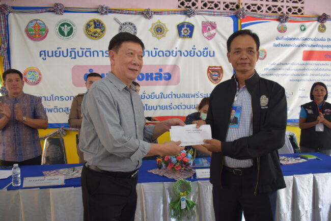 วันนี้ 15 มี.ค. 67 เมื่อเวลา 10.00 น. พล.ต.ท. บุญจันทร์ นวลสาย ข้าราชการบำนาญ วิทยากรต้นแบบ สำนักงานตำรวจแห่งชาติ ประธานคณะกรรมการตรวจเยี่ยมพร้อมคณะลงพื้นที่มาตรวจเยี่ยมศูนย์ปฏิบัติการโครงการชุมชนบำบัดอย่างยั่งยืนในตำบลแพร่ระบาดยาเสพติดสูงสุด 100 ตำบล ตามนโยบายเร่งด่วนของรัฐบาล ณ ศูนย์ปฏิบัติการชุมชนบำบัดอย่างยั่งยืน บ้านดอนเกล็ด ตำบลยางหล่อ อำเภอศรีบุญเรือง จังหวัดหนองบัวลำภู โดยมี พล.ต.ต.ศักดา เหมือนโพธิ์ ผบก.ภ.จว.หนองบัวลำภู นายเพทาย จรกระโทก นายอำเภอศรีบุญเรือง พ.ต.อ.สุมิตร นันสถิตย์ ผกก.สภ.ศรีบุญเรือง ผู้แทน ผอ. ป.ป.ส.ภาค 4 หัวหน้าส่วนราชการ นายคมสัน ไสยรัตน์ ประธาน กต.ตร.สภ.ศรีบุญเรือง นายเหมราช หาญเชิงชัย นายกเทศมนตรีตำบลยางหล่อ กำนัน ผญบ.ในตำบลยางหล่อ ผู้เสพที่กล้าแสดงตนขอเลิกยาเสพติด ชรบ.ครูตำรวจแดร์ประจำตำบล อสม.ร่วม 200 คนให้การต้อนรับ