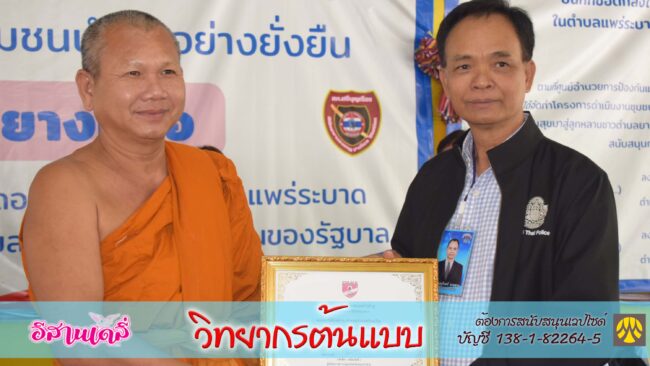 หลังจาก พล.ต.ท. บุญจันทร์ วิทยากรต้นแบบ ได้มอบเกียรติบัตรเชิดชูเกียรติให้กับผู้สนับสนุนโครงการ และถวายเกียรติบัตร แด่พระครูปริยัติโชติการ เจ้าคณะอำเภอศรีบุญเรือง ที่ได้ให้การสนับสนุนโครงการด้วยดีเสมอมา พร้อมได้สอบถามหน่วยงานในพื้นที่ที่ให้การสนับสนุนกิจกรรม พบปะพูดคุยกับผู้มีประสบการณ์ในการเสพยาเสพติด และกล้าแสดงตนเข้าร่วมโครงการพร้อมได้รับคำมั่นสัญญาจากผู้ร่วมโครงการว่าจะไม่ยุ่งเกี่ยวกับยาเสพติด ในขณะเดียวกันมีแม่ของผู้ป่วยรายหนึ่งที่นำลูกมาแสดงตนต่อหน้าประธานในพิธี และผู้เข้าร่วมกิจกรรมจะไม่ไปยุ่งเกี่ยวกับยาเสพติดอีก พร้อมก้มกราบเท้าแม่และกอดแม่ด้วยความสำนึกผิด และในขณะเดียวกัน มีลูกเล็กๆของผู้ป่วยรายหนึ่งที่เข้าร่วมกิจกรรม ได้ขอร้องผู้เป็นพ่ออย่าไปยุ่งเกี่ยวกับยาเสพติดอีก สร้างความตื่นตันใจของผู้เข้าร่วมกิจกรรม ให้กำลังใจผู้เกี่ยวข้องทุกฝ่าย ให้ขับเคลื่อนโครงการได้ประสบความสำเร็จตามเป้าหมาย เพื่อให้เป็นชุมชนสีขาวปลอดยาเสพติด อย่างแท้จริง