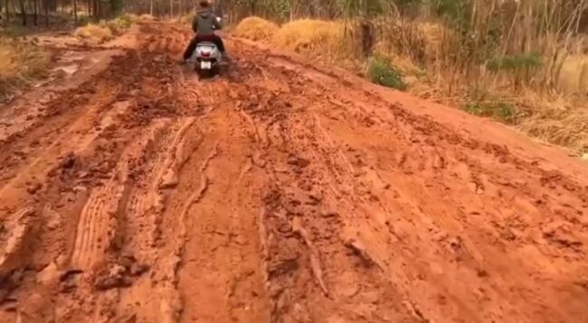 แชร์สนั่นโซเชียลสภาพถนนเข้าหมู่บ้านสายท่าโปง-หลังสัน หลังเจอฝนตกทำให้ถนนเละเป็นโคลนรถวิ่งลำบากชาวบ้านหวิดตกถนนซ้ำ