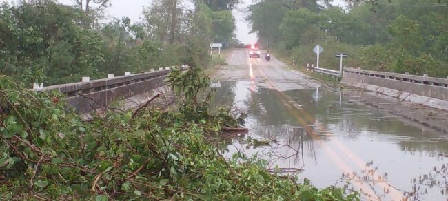ผู้สื่อข่าวรายงาน เกิดฝนตกฟ้าคะนองลมกระโชกแรง และมีลูกเห็บตก เป็นเหตุให้ต้นไม้โค่นล้มกีดขวางการจราจร ทางหลวงแผ่นดิน หมายเลข 2287 (อ.ดงหลวง-อ.เขาวง จังหวัดกาฬสินธุ์ ) ทำให้ไม่สามารถใช้สัญจรไปมาได้ชั่วคราว ทางนายนราวิชญ์ มณีฤทธิ์ นายอำเภอดงหลวง พร้อมด้วย อบต.พังแดง และเทศบาลตำบลหนองแคน ได้นำกำลังเจ้าหน้าที่ตัดต้นไม้ดังกล่าวเพื่อเปิดการจราจรให้ชาวบ้านได้สัญจรไป-มา และต้นไม้ล้มทับสายไฟฟ้าแรงสูงทำให้เกิดไฟฟ้าดับเป็นบริเวณกว้างและไฟฟ้าดับหลายชั่วโมง รวมทั้งทำให้บ้านเรือนราษฎรได้รับความเสียหายจำนวน 49 หลังคาเรือน รวม 3 ตำบล ได้แก่ ตำบลหนองแคน ตำบลพังแดง และตำบลดงหลวง อำเภอดงหลวง จังหวัดมุกดาหาร