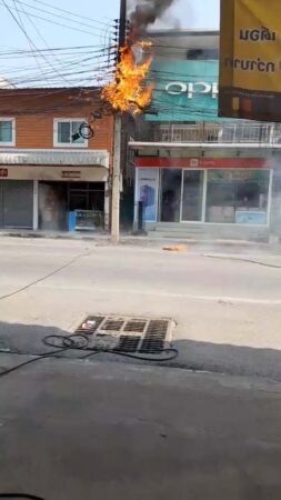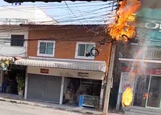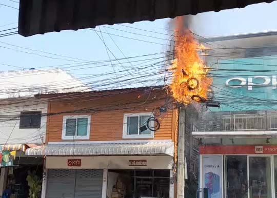 เมื่อเวลา 09.30 น. วันที่ 21 เมษายน 2567 เกิดเหตุเพลิงลุกไหม้สายสัญญาณอินเตอร์เน็ตที่อยู่บนเสาไฟฟ้า หน้าร้านริวโมบาย ภายในตลาดเทศบาลตำบลวังชัย อ.น้ำพอง จ.ขอนแก่น ชาวบ้านเจ้าของร้านค้ารอบบริเวณ ช่วยกันนำถังเคมีมาดับไฟเอาไว้ได้ จากนั้นได้แจ้งไปยังรถดับเพลิงจากเทศบาลตำบลวังชัย พร้อมกับแจ้งการไฟฟ้าส่วนภูมิภาคน้ำพอง เข้าทำการดับไฟ พร้อมกับฉีดน้ำดับเพลิงทียังคงคุกรุ่นอยู่