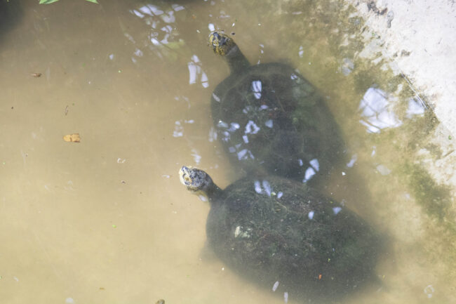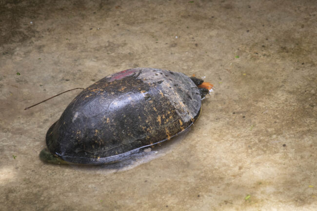 ​“เกร็ดความรู้สำหรับวิธีการแยกประเภทเต่าบกและเต่าน้ำก่อนปล่อยคืนสู่ธรรมชาติ โดยสามารถสังเกตได้ที่บริเวณเท้าของเขา โดยเต่าบกจะมีลักษณะเท้าที่ชัดเจนกว่าเต่าน้ำ บริเวณเท้าจะไม่มีพังผืด เท้ากลม เล็บหนา ขามีเกล็ดแข็ง เพื่อใช้ในการเดินและหาอาหารตามบนพื้นดินเพียงเท่านั้น ซึ่งจะแตกต่างจากเต่าน้ำที่บริเวณเท้าจะมีพังผืดเชื่อมกันระหว่างนิ้ว เท้าแบน เล็บขนาดเล็ก ขาไม่มีเกล็ด เพื่อใช้ในการว่ายน้ำและหาอาหารตามธรรมชาติ”