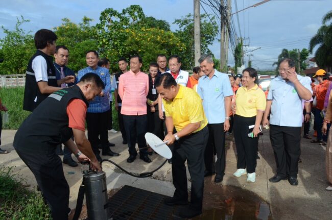 เมื่อวันที่ 24 พฤษภาคม 2567 ผู้สื่อข่าวประจำจังหวัดกาฬสินธุ์รายงานว่า ที่บริเวณถนน 7 ชั่วโคตร ชุมชนหัวโนนโก-เกษตร และถนนพร้อมพรรณอุทิศ เขตเทศบาลเมืองกาฬสินธุ์ นายสนั่น พงษ์อักษร ผวจ.กาฬสินธุ์ พร้อมด้วยนายธวัชชัย รอดงาม รอง ผวจ.กาฬสินธุ์ นายรุจติศักดิ์ รังษี รอง ผวจ.กาฬสินธุ์ นายประยูร ศิริวรรณ หัวหน้าสำนักงาน จ.กาฬสินธุ์ นพ.สุรสิทธิ์ จิตรพิทักษ์เลิศ ผู้อำนวยการ รพ.กาฬสินธุ์ ดร.สม นาสอ้าน รองนายแพทย์ สสจ.กาฬสินธุ์ นายสันติ จัตุพันธ์ นายอำเภอเมืองกาฬสินธุ์ พร้อมด้วยเจ้าหน้าที่ รพ.กาฬสินธุ์, สาธารณสุข จ.กาฬสินธุ์, สาธารณสุข อ.เมืองกาฬสินธุ์, เทศบาลเมืองกาฬสินธุ์,ผู้แทนสำนักงานโยธาธิการและผังเมืองจังหวัดกาฬสินธุ์ และ อสม.ร่วมกันรณรงค์กำจัดแหล่งเพาะพันธุ์ยุงลาย ป้องกันภัยร้ายจากโรคไข้เลือดออก พร้อมติดตามดูสภาพปัญหา 7 ชั่วโคตรในเขตเทศบาลเมืองกาฬสินธุ์ ได้พบปะพี่น้องประชาชนผู้ได้รับผลกระทบจากโครงการ การพบปะประชาชนยังมีรายงานว่าเกิดขึ้นตั้งแต่เมื่อวานในช่วงเย็น ถึงวันนี้เพื่อให้ครอบคลุมทุกโครงการ ทำให้ชาวบ้านผู้ได้รับผลกระทบมีรอยยิ้มกล่าวขอบคุณผู้ว่าราชการจังหวัดที่เข้ามาดูแล ทำให้ชาวบ้านอุ่นใจ นอกจากนี้คณะยังได้ไปติดตามดูจุดก่อสร้างโครงการเขื่อนป้องกันตลิ่งลำน้ำพาน ต.ลำพาน อ.เมืองกาฬสินธุ์ มี ดต.สมคิด นันทสมบูรณ์ นายกเทศมนตรีลำพาน พร้อมด้วยผู้แทนโยธาธิการและผังเมือง จ.กาฬสินธุ์ ให้ข้อมูล ทั้ง 2 จุด จากการสังเกตผู้ติดตามทุกคน หลายคนถึงกับส่ายหน้า รู้สึกแสนเสียดายงบประมาณแผ่นดิน ที่ผู้รับเหมาเบิกจ่ายไปแล้วจำนวนมาก แต่ทำงานไม่เสร็จ พื้นที่งานที่ทำทิ้งไว้เกิดการสไลด์ และกำลังพังทลายลงในลำน้ำพาน จึงมีการสั่งการให้มีการติดตามปัญหานี้อย่างเร่งด่วน