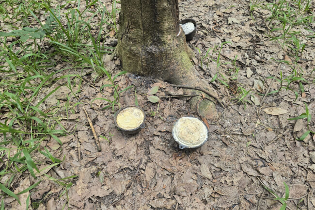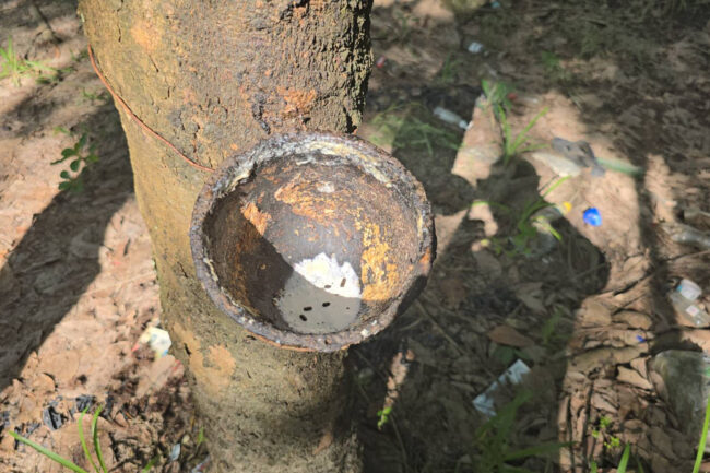 จากนั้นทีมข่าวได้เดินทางไปพบ นางสาวดงเย็น เกตุพิบูรณ์ อายุ 47 ปี ชาวบ้านโนนสะอาด ต.นาทับไฮ อ.รัตนวาปี จ.หนองคาย เล่าว่า เมื่อช่วงเช้ามืดของวันนี้ (9 ก.ค.67) ยางก้อนถ้วยที่สวนของตนได้ถูกขโมยไปเกือบยกสวน ตนได้กรีดยางพาราช่วงบ่ายของวันที่ (8 ก.ค.67) และหยอดน้ำกรดไว้ และเมื่อคืนเกิดฝนตกหนักช่วงเช้าจึงเดินทางมาที่สวนพบว่ายางก้อนถ้วยที่กรีดไว้ 3 มีด ได้หายไปเกินครึ่งสวน ที่สวนตนมีเนื้อที่ 2 ไร่ ปลูกยางพารา 100 กว่าต้น เหลือเพียงประมาณ 20 ต้น ที่ไม่ถูกขโมยนอกนั้นถูกขโมยไปทั้งหมด และอีกหลายสวนที่อยู่คนละฝั่งถนนก็ถูกขโมยไปเยอะเช่นกัน วันนี้ไม่มีแรงจะกรีดยางเพราะท้อมากไม่รู้จะเอาเงินที่ไหนมาใช้จ่าย เพราะยางจะกรีดอีกเพียงมีดเดียวก็จะเก็บไปขายแล้ว เรื่องนี้ตนไม่ได้ไปแจ้งความเพราะไม่คิดว่าจะจับคนร้ายได้