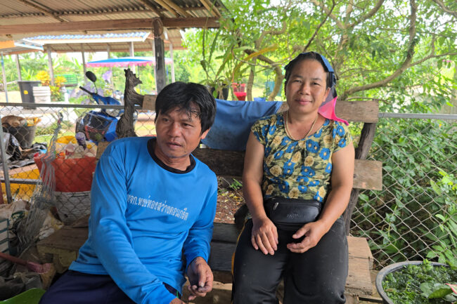 นายเชิด ศุกเสา อายุ 63 ปี,นางบัวไข ศุกเสา อายุ 56 ปี ชาวบ้านตาดทอง ต.พระบาทนาสิงห์ อ.รัตนวาปี จ.หนองคาย เล่าว่า ยางก้อนถ้วยที่สวนถูกขโมยไปประมาณกว่า 200 กก. โดนทั้งแถวโจรมันเลือกเก็บยางก้อนถ้วยเฉพาะต้นที่ใหญ่ๆ เพราะน้ำยางจะเยอะ เอาตั้งแต่ด้านล่างของสวนทั้งแถบ ด้านบนจะเอาสองแถว แถวสุดท้ายน้ำยางจะออกดีได้น้ำยางต้นละ 2-3 ถ้วย โดนขโมยช่วงประมาณ 19.00 – 20.00 น. มีคนเห็นและมาบอกที่บ้านว่าเห็นผู้ต้องสงสัยขับรถสวนกันช่วงนั้นฝนกำลังตกหนัก พอจะรู้ตัวคนขโมยแต่ก็ไม่เคยไปปรักปรำเขาเพราะไม่มีหลักฐานที่เพียงพอ แต่คนที่เห็นเหตุการณ์บอกว่าเห็นยางก้อนถ้วยอยู่ในรถของผู้ต้องสงสัย เพราะช่วงที่เห็นนั้นเขาจะไปจับกบซึ่งได้ขับรถ จยย.สวนกันกับผู้ต้องสงสัย ทราบและจำได้ชัดเจนว่าเป็นใคร ยางก้อนถ้วยของคนในหมู่บ้านหายบ่อยมากเกือบทุกวัน โจรมันจะเลือกขโมยวันละสวนไม่ขโมยซ้ำสวนเดิม ที่สวนหายประมาณวันที่ 3-4 ก.ค. แต่ก็พอสังเกตได้ว่าจะมีโจรมาแอบดูว่าจะขโมยสวนเราได้ช่วงไหน และเราก็ไปเฝ้าสวนตลอด แต่อีกสวนฝั่งอีกฝั่งจะหายบ่อยมาก