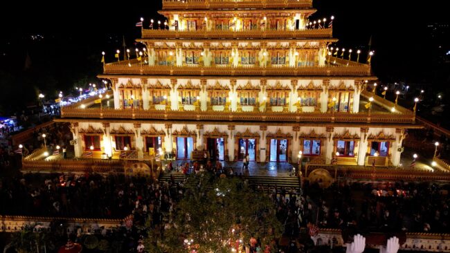 ขอนแก่น (ชมคลิป) ชาวพุทธเมืองหมอแคนร่วมทำบุญเข้าพรรษา แห่ชมความสวยงามพระธาตุ 9 ชั้นวัดหนองแวง
