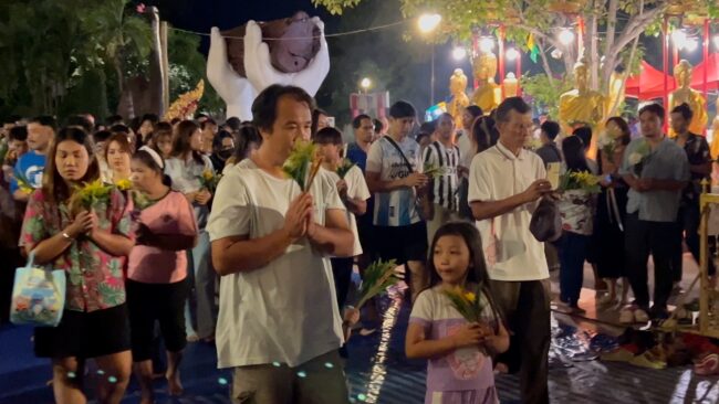 พุทธศาสนิกชนชาวจังหวัดขอนแก่น พร้อมใจเวียนเทียนรอบพระบรมธาตุ 9 ชั้น ภายในวัดหนองแวงพระอารามหลวง ในวันอาสาฬหบูชา ท่ามกลางสภาพอากาศที่เป็นใจ
