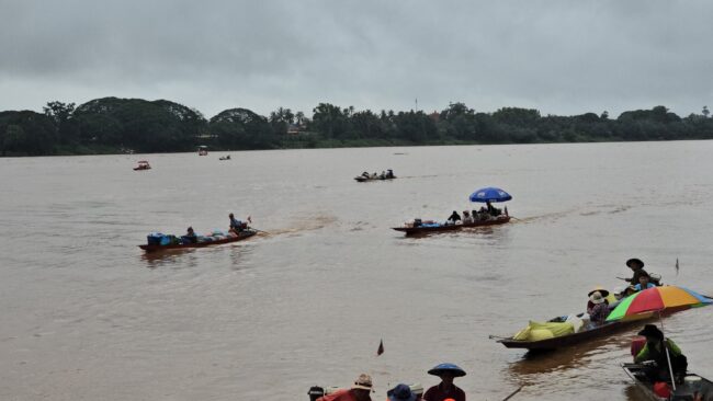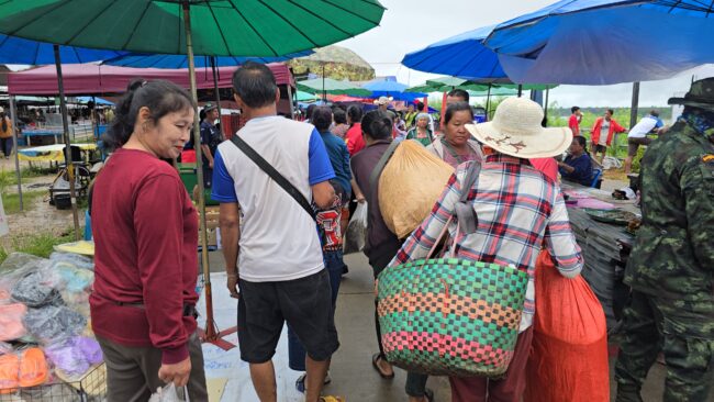 เช้าวันที่ 21 กรกฎาคม 2567 บรรยากาศการค้าขายชายแดน ที่บริเวณริมฝั่งแม่น้ำโขง ตลาดนัดจุดผ่อนปรนไทย ลาว บ้านเปงจาน อำเภอรัตนวาปี จังหวัดหนองคาย เปิดระหว่างเมืองท่าพระบาท สปป.ลาว ซึ่งมีบรรดา พ่อค้า แม่ค้า รวมถึงประชาชน นักท่องเที่ยว ทั้งชาวไทยและชาวลาว ได้นำสินค้าต่างๆ มาวางขาย สินค้าที่นำเข้าจาก สปป.ลาว เป็นสินค้าพื้นเมือง เช่นสินค้า เกษตร ผักพื้นบ้าน ของป่า เห็ด สมุนไพร สินค้าประมง เป็นการแลกเปลี่ยนคือพี่น้อง สปป.ลาว จะซื้อสินค้าประเภท เครื่องนุ่งห่ม เครื่องใช้ เครื่องครัว หรือเครื่องอุปโภค บริโภค ต่างๆ จากฝั่งไทยกลับไป ตลาดนัดจุดผ่อนปรนไทย-ลาว บ้านเปงจาน เป็นที่นิยมของเหล่าพ่อค้า แม่ค้า ทั้งไทย -ลาว เป็นการกระตุ้นเศรษฐกิจในพื้นที่ได้เป็นอย่างดี ซึ่งวันนี้เป็นวันเข้าพรรษาประชนชนทั้งสองฝั่ง ได้มาจับจ่ายซื้อสินค้ากลับเพื่อบริโภคเองและนำไปทำบุญที่วัดด้วย ทำให้บรรยากาศซื้อขายคึกคัก ด่านเปิด ทุกวันพุธ- ศุกร์ และอาทิตย์ เวลา 08.00-12.00 น. โดยเฉพาะวันอาทิตย์ เป็นการนำสินค้ามาวางจำหน่านในพื้นที่ตลาดนัด โดยมี เจ้าหน้าที่ ทหารกองกำลังสุรศักดิ์มนตรี,ฝ่ายปกครอง,กำนัน ผู้ใหญ่บ้าน คอยอำนวยความสะดวกดูแลความปลอดภัยและตรวจสัมภาระต่าง ๆ ที่อาจจะมีการลักลอบซุกซ่อนนำสิ่งผิดกฎหมาย เข้ามาในประเทศ.