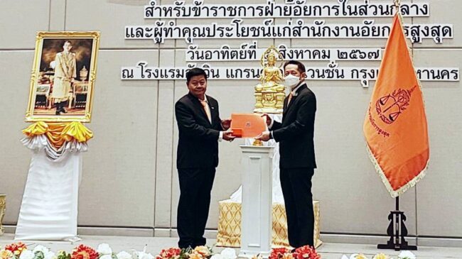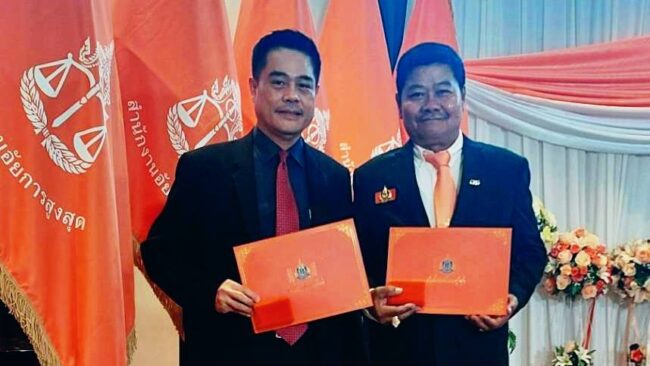 นายชานนท์ ลิขิตบัณฑูร ประธานคณะกรรมการอัยการภาคประชาชน สำนักงานอัยการจังหวัดร้อยเอ็ด เข้ารับเครื่องหมายเชิดชูเกียรติ “ยกกระบัตร” จากนายอำนาจ เจตน์เจริญรักษ์ อัยการสูงสุด ณ โรงแรมอัศวิน แกรนด์คอนเวนชั่น กรุงเทพมหานคร โดยมีผู้ใหญ่ในสำนักงานอัยการสูงสุด ผู้ทรงเกียรติที่เข้ารับเครื่องหมายเชิดชูเกียรติ คณะอัยการจังหวัด และคณะกรรมการอัยการภาคประชาชนสำนักงานจังหวัดร้อยเอ็ด ร่วมถ่ายภาพและแสดงความยินดี