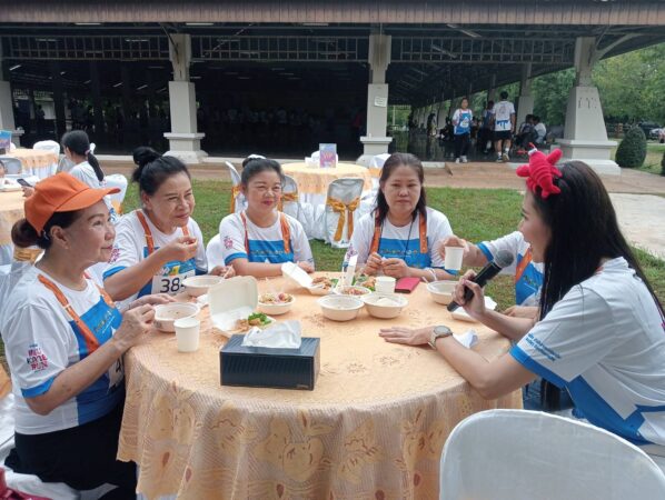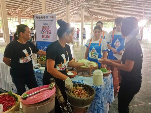 กลุ่มผู้รักษ์สุขภาพ นักเปิบ ทุกเพศ ทุกวัย ในจังหวัดกาฬสินธุ์ และจากจังหวัดมหาสารคาม รวมทั้งจังหวัดใกล้เคียง ร่วมกิจกรรมแข่งขันวิ่ง ร้อยแก่นสารสินธุ์ กิโล รัน แซ่บหลายรัน ครั้งที่ 2 เชื่อมโยงเส้นทางท่องเที่ยว “กลุ่มร้อยแก่นสารสินธุ์” พร้อมเปิดเมนูชูสุขภาพจากกุ้งก้ามกรามหลายเมนู ขณะที่ “ส้มตำกุ้ง” จานเด็ด สูตรใหม่ รสชาติจัดจ้าน แซ่บอีหลี ได้รับความนิยมจากคอตำบักหุ่ง (ตำมะละกอ) ต่อคิวแน่นเอี๊ยดกว่าทุกเมนู แม่ค้าเผยเตรียมมะละกอและกุ้งก้ามกรามนึ่งสุกมากว่า 30 กก.หมดเกลี้ยง