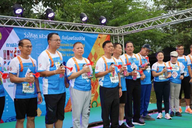 วันที่ 11 สิงหาคม 2567 ที่บริเวณพุทธมณฑล (แก่งดอนกลาง) อ.เมือง จ.กาฬสินธุ์ นายธวัชชัย รอดงาม รอง ผวจ.กาฬสินธุ์ เป็นประธาน เปิดกิจกรรมแข่งขันวิ่ง “ร้อยแก่นสารสินธุ์ กิโล รัน แซ่บหลายรัน” ครั้งที่ 2 โดยมีนายวิบูรณ์ แววบัณฑิต ผวจ.มหาสารคาม, นายธนภัทร ณ ระนอง รอง ผวจ.กาฬสินธุ์, นายผดุงศักดิ์ อิ่มเอิบ ปลัด จ.กาฬสินธุ์, นายประยูร ศิริวรรณ หัวหน้าสำนักงาน จ.กาฬสินธุ์, นายคำสัน นิลยองตระกูล ท่องเที่ยวและกีฬา จ.กาฬสินธุ์ และนายจารุวัฒน์ บุญเพิ่ม นายกเทศมนตรีเมืองกาฬสินธุ์ พร้อมด้วยส่วนราชการ ภาคเอกชน นักท่องเที่ยวและนักวิ่งชาว จ.กาฬสินธุ์และจังหวัดใกล้เคียงกว่า 500 คน เข้าร่วมกิจกรรม โดยวิ่งรอบแก่งดอนกลาง ระยะทาง 4.8 กม. ทั้งนี้ เพื่อใช้กิจกรรมการกีฬาเป็นกลไกในการขับเคลื่อนการท่องเที่ยวในจังหวัด ช่วยเพิ่มจำนวนนักท่องเที่ยว ส่งเสริมให้ประชาชนในพื้นที่มีรายได้เพิ่มขึ้น