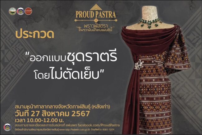 วันที่ 26 สิงหาคม 2567 นายอุทัย สิงห์ทอง พัฒนาการจังหวัดกาฬสินธุ์ เปิดเผยว่า สำนักงานพัฒนาชุมชน จ.กาฬสินธุ์ ได้รับงบประมาณจากจังหวัด นำโดยนายสนั่น พงษ์อักษร ผู้ว่าราชการ จ.กาฬสินธุ์ในการจัดกิจกรรม เพื่อส่งเสริมการขายพัฒนาสินค้าโอทอป ยกระดับคุณภาพชีวิตประชาชน และความเป็นอยู่ที่ดีขึ้น  และที่สำคัญเป็นที่ทราบกันดีว่า จ.กาฬสินธุ์ มีผ้าไหมแพรว่าที่โดดเด่น เป็นเอกลักษณ์ และอัตลักษณ์ของชนเผ่าภูไท ซึ่งได้รับพระมหากรุณาธิคุณสมเด็จพระนางเจ้าสิริกิติ์ พระบรมราชินีนาถ พระบรมราชชนนีพันปีหลวงที่จัดตั้งศูนย์ศิลปาชีพที่บ้านโพน อ.คำม่วง และส่งเสริมจากผ้าไหมแพรวาที่กำลังจะเลือนหายไปกลับมามีชีวิตจนมีชื่อเสียงที่เลื่องลือ และได้รับการขนานนามว่าเป็นราชินีแห่งผ้าไหม