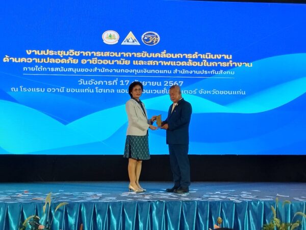 สำนักงานประกันสังคมเดินหน้าสร้างความปลอดภัยและป้องกันการประสบอันตรายและเจ็บป่วยเนื่องจากการทำงานแก่สถานประกอบการและแรงงานในพื้นที่ภาคอีสานจูงใจด้วยการมอบรางวัลหากสถานประกอบการมีอัตราการบาดเจ็บเนื่องจากการทำงานต่ำลง