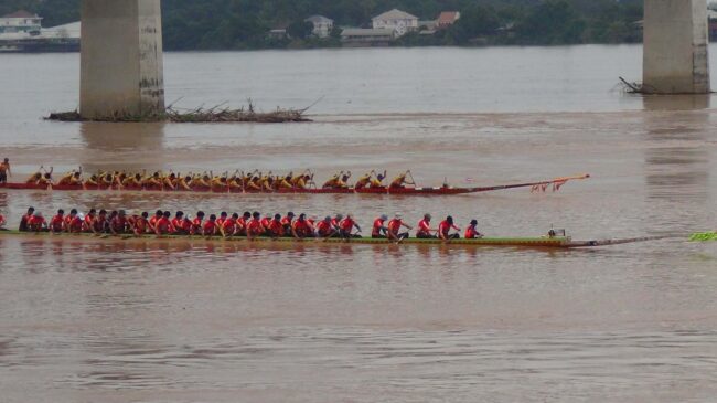 มุกดาหาร – เทศบาลตำบลบางทรายใหญ่ จัดงานประเพณีแข่งเรือยาว เพื่อชิงถ้วยประทาน พระเจ้าวรวงค์เธอพระองค์เจ้าโสมสวลีกรมหมื่นสุทธนารีนาถ พร้อมเงินรางวัลจำนวน 40,000 บาท ท่ามกลางสายฝน และน้ำเชี่ยวแรง