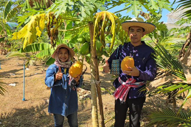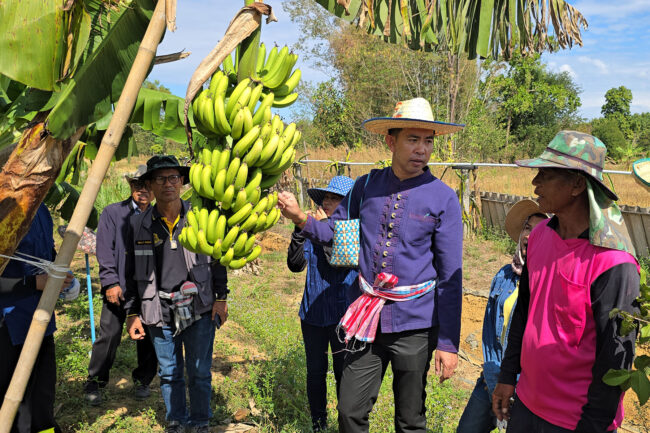 นายเข็มพรฯ กล่าวว่า ตนได้หันมาเป็นเกษตรกรแนวเศรษฐกิจพอเพียง มีพื้นที่ทั้งหมด 10 ไร่ ทำ โคก หนอง นา โมเดล แบ่งปลูกนาข้าว ปลูกหญ้าในล์ ปลูกนาบัว ปลูกไม้ผล และขุดสระ ไม้ผลเช่น มะพร้าวน้ำหอม ทุเรียนพันธุ์หมอนทอง เงาะโรงเรียน ลำไย ลิ้นจี่ มังคุด อาโวคาโด พุทรา เป็นต้นปลูกผสมผสาน ส่วนสระน้ำได้ปล่อยปลา ปลาดุก ปลาตะเพียน ปลาใน ปลานิล นาข้าว 1.5 ไร่ได้ผลผลิตประมาณ 500 กก.ต่อปี สามารถกินในครัวเรือนได้ตลอดทั้งปี สวนพืชเศรษฐกิจ ได้ปลูกองุ่น 1 งาน ปลูกหลายพันธุ์ผสมผสานกัน สามารถเก็บผลผลิตได้แล้ว 1 รอบ ขายได้ประมาณ 30,000 บาท ส่วนไม้ผลที่ได้ผลผลิตแล้วคือ กล้วยพันธุ์มะลิอ่อง และพุทรา พันธุ์กล้วยได้รับมาจากเกษตรอำเภอรัตนวาปี 4 ต้น มะพร้าวน้ำหอมอีก 37 ต้น เริ่มพัฒนาพื้นที่เป็น โคก หนอง นา โมเดล เมื่อเดือน เมษายน ปี 2565 โดยการเริ่มจาการขุดคลองไส้ไก่ และขุดสระน้ำจำนวน 2 บ่อ ถือว่าประสบความสำเร็จไปในระดับหนึ่ง ซึ่งจะต้องต่อยอดไปเรื่อย ๆ