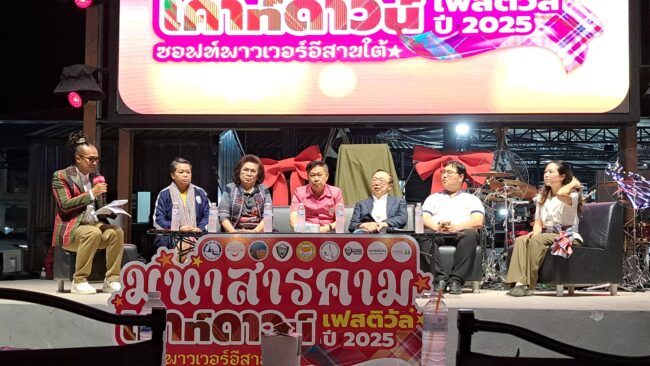 เริ่มแล้ว นทท แห่เช็คอินต้นสนผ้าข้าวม้ากระติ๊บข้าว ททท.ชวนนักท่องเที่ยวร่วมกิจกรรม มหาสารคามเคาท์ดาวน์ เฟสติวัล ซอฟท์พาวเวอร์อีสานใต้ ปี 2025 เคาท์ดาวน์ครั้งแรกของมหาสารคาม ชูคอนเซปท์งาน Home Coming Festival”กระตุ้นเศรษฐกิจ