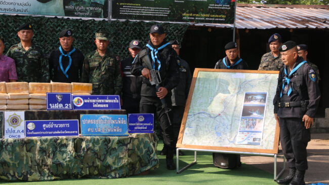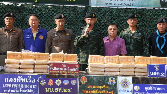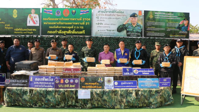ผู้สื่อข่าวรายงานว่า เมื่อวันที่ 7 มกราคม 2568 ที่ ร้อย.ฉก.ทพ.2104 ฉก.ทพ.21 ต.วัดหลวง อ.โพนพิสัย จ.หนองคาย พล.ต.สุคนธรัตน์ ชาวพงษ์ ผบ.กกล.สุรศักดิ์มนตรี ร่วมกับ พ.อ.อินทราวุธ ทองคำ ผบ.ฉก.ทพ.21,พ.อ.เรวัฒ ธรรมจิรเดช รอง ผบ.ควบคุมที่ 2 กกล.สุรศักดิ์มนตรี,พ.ต.อ.จามร อันดี รอง ผบก.ภ.จว.หนองคาย,นาถาวร สังขะมาน นอภ.โพนพิสัย,นายเดชมนตรี ผิวเหลือง ป้องกัน จ.หนองคาย,นายธนพัฒน์ บุญชู นักสืบสวนสอบสวนชำนาญการ ปปส. ภาค 4,พ.ต.วิทยา สิงห์อร ผบ.ร้อย.ฉก.ทพ.2104 ทพ.21 และเจ้าหน้าที่จำนวนหนึ่ง แถลงผลการจับนายเกษม (นามสมมุติ) อายุ 18 ปี บ้านเลขที่ 34 บ.ศรีวัฒนา ม.8 ต.บ้านม่วง อ.บ้านดุง จ.อุดรธานี พร้อมตรวจยึดยาบ้าจำนวน 788,000 เม็ด บรรจุในกระเป๋าเดินทางขนาดใหญ่ และ กระสอบ1ใบ ที่บริเวณริมฝั่งแม่น้ำโขง บ้านแดนเมือง ม.3 ต.วัดหลวง อ.โพนพิสัย จ.หนองคาย และติดตามจับกุมผู้ต้องหาได้ที่ริมถนน 212 บ.แดนเมือง ต.วัดหลวง ใกล้กับที่เกิดเหตุ