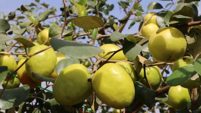 นายคมสัน กล่าวเพิ่มเติมว่า พุทราที่ปลูกไว้มีความปลอดภัยกับผู้บริโภค เพราะปลูกในโรงเรือนที่กางมุ้งคุมต้นพุทรา ทั้ง 150 ต้น เนื่องจากต้นพุทราให้ผลผลิตจำนวนมาก จึงต้องปลูกในโรงเรือนแบบปิดเพื่อป้องกันแมลง พุทราสามารถให้ผลผลิตขั้นต่ำต้นละ 20-30 กิโลกรัม โดยขนาดผลพุทราที่ได้จะใหญ่เท่ากับผลแอปเปิ้ลเขียวและผลใหญ่กว่าพุทราธรรมดา 3-4 เท่า เฉลี่ย 7-8 ลูก ต่อ 1 กิโลกรัม ขายหน้าสวน กิโลกรัมละ 100 บาท ปีนี้ให้ผลดีเกินคาด ขายไปแล้วกว่า 1 ตัน ซึ่งพึ่งเริ่มต้นฤดูการเก็บผลผลิต คาดว่าจะสามารถเก็บขายได้ไปจนถึงเดือนมีนาคม 2568 เก็บได้ประมาณ 2-3 ตัน ส่วนปี 2567 ที่ผ่านมาเก็บผลผลิตได้ประมาณ 1 ตัน