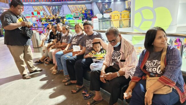 ขณะที่หญิงสาวที่สวมเสื้อ “ไอ้เป๊าะ CEO ม.6” สีขาว บอกว่า วันนี้ตั้งใจที่จะมาดูหนัง เรื่อง “ไอ้เป๊าะ CEO ม.6” เห็นเพื่อนบ้านเขามาดู แล้วกลับไปบ้าน เขาบอกว่าเป็นหนังที่ดีมาหก สร้างแรงบันดาลใจได้เป็นอย่างดี พอว่างจากการทำงานบ้าน ทำอาชีพประจำ ก็เลยมาดู และได้เสื้อ “ไอ้เป๊าะ CEO ม.6” ด้วยดีใจมากที่จะได้ดู