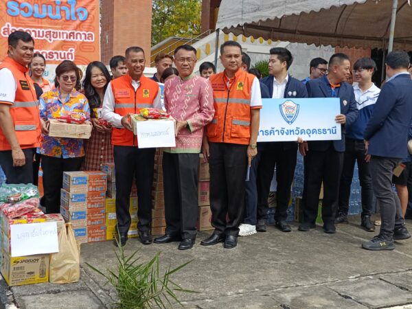 เมื่อ ผวจ.อุดรธานี เดินทางมาถึงก็ได้เดินชมบูธที่หน่วยงานต่าง ๆ มาแสดงร่วมงาน และได้รับมอบสิ่งของน้ำดื่มที่หน่วยงาน ห้างร้านต่าง ๆ ได้ส่งทั้งน้ำดื่ม และอุปกรณ์เพื่อสนับสนุนการดำเนินการป้องกันและลดอุบัติเหตุทางถนนในช่วงเทศกาลสงกรานต์ในครั้งนี้ ภาคเอกชนต่าง ๆ อาทิเช่น หอการค้าจังหวัดอุดรธานี ห้างเซฟมาร์ทซูเปอร์สโตร์, บริษัท ไอคิว เซ้าท์อีสต์ โอเอ อุดรธานี จำกัด, ศูนย์การค้ายูดีทาวน์ อุดรธานี, โรงแรม MOCO HOTEL และศูนย์ประชุมมลฑาทิพย์ เป็นต้น