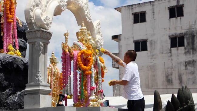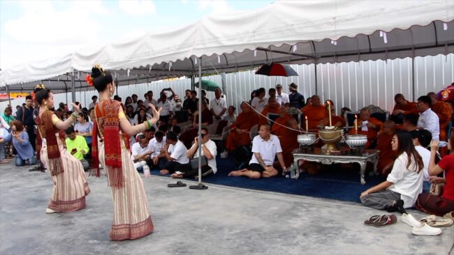 ประชาชนนับร้อยเข้าร่วมพิธีบวงสรวง และอธิษฐานจิตเทวาลัย “พระพิฆเนศ” พร้อมร่วมอาบน้ำมนต์ปัญจะพุทธาฟ้าสนั่นก้องเวหาฯ ที่มี “หลวงปู่ศิลา สิริจันโท” พร้อมพระเกจิอาจารย์เมตตาเสกน้ำมนต์อาบเป็นกรณีพิเศษ โดยขณะที่นางรำกำลังรำบวงสรวง ได้เกิดปรากฏการณ์ “เมฆาอาร์คัส” กลุ่มเมฆเคลื่อนบดบังดวงอาทิตย์จนเสร็จพิธี